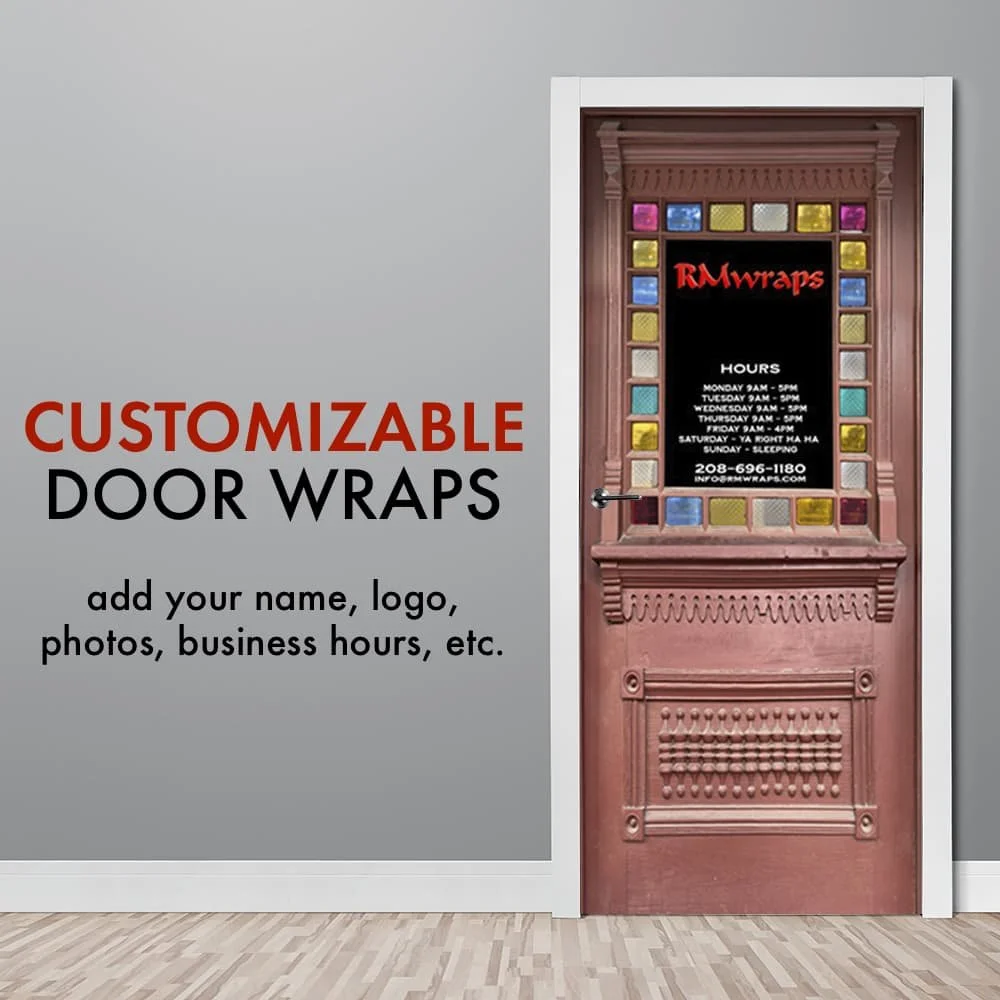 A door wrap can transform a simple door into the talking point of your home, kitchen, man cave, office, etc. It’s an easy way to rejuvenate a flat door into looking better than new, or simply add some style to that boring surface!